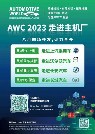 由深圳市工业和信息化局指导,励展博览集团主办的AWC(深圳国际新能源及智能网联汽车全产业博览会)将于2023年10月11-13日在深圳国际会展中心盛大开幕,作为全球创新的聚焦新能源以及智能网联汽车的全产业B2B专业展会,本届盛会备受中外汽车行业期待,让我们一起抢先看看本届展会的九大亮点吧!