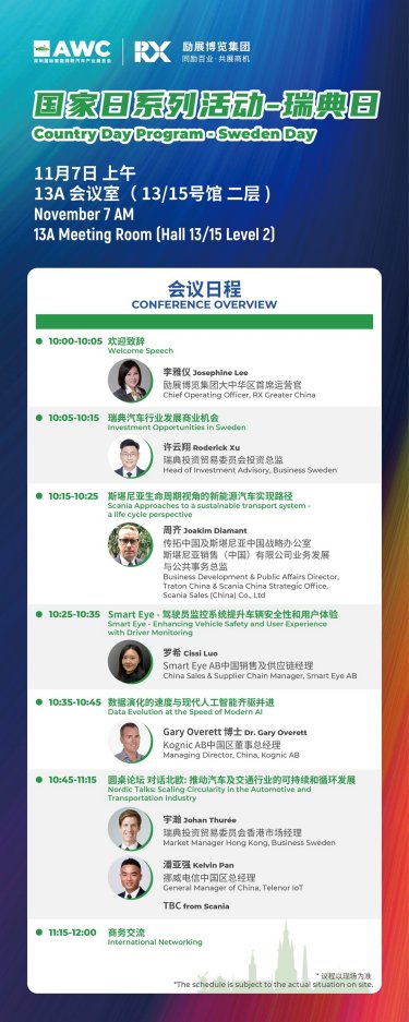 瑞典日将关注可持续发展,分享北欧汽车供应链的创新解决方案,探讨脱碳趋势。东盟日及马来西亚投资研讨会聚焦新能源汽车与智能网联技术,探讨合作机遇、投资及政策法规。