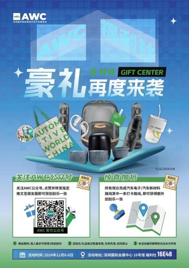 AWC 2024设打卡路线赠礼、福利社豪礼,展前惊喜发布,展期持续送礼。五条新路线覆盖汽车电子、新材料等前沿领域。