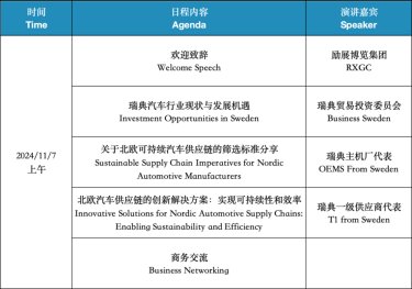瑞典驻华大使馆、瑞典驻港总领事馆及瑞典贸易投资委员会将率瑞典城市交通代表团于今年11月参观AWC,并共同举办现场活动,旨在为中瑞两国之间在汽车行业的知识累积、可持续发展的经验交流和探索未来合作提供平台。