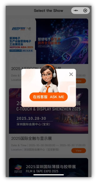 即刻使用,从 “参观预登记”“如何报名行业论坛”“怎么获取参展商名单”,到 “展馆附近地铁口位置”“馆内美食区在哪”,哪怕凌晨突发疑问,打开小程序点 “在线客服”,不用等邮件、不用打热线,即时就能得到答案,展前规划更从容;