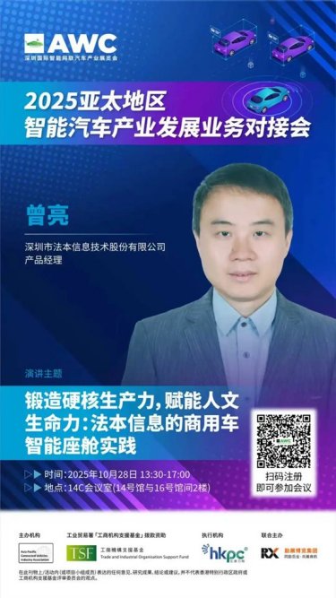 在这一变革节点,2025AWC亚太地区智能汽车产业发展对接会应势而启。对接会特邀亚太智能网联汽车产业协会主席诠释人工智能、车联网及无人驾驶在亚太及香港的发展,联袂如祺出行分享Robotaxi实战经验,并携手东软睿驰、康谋科技、法本信息等行业技术专家,共同探讨端到端智驾落地、高保真仿真验证与智能座舱人文赋能等核心议题,为参与者提供从技术路径到商业变现的全景视角。