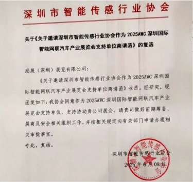 近日,2025AWC深圳国际智能网联汽车产业展览会迎来重要合作伙伴——深圳市智能传感行业协会(以下简称“深传感”)正式复函确认担任本届展会支持单位。