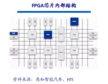 FPGA芯片主要由6部分完成,分别为:可编程输入输出单元、基本可编程逻辑单元、完整的时钟管理、嵌入块式RAM、丰富的布线资源、内嵌的底层功能单元和内嵌专用硬件模块。目前主流的FPGA仍是基于查找表技术的,已经远远超出了先前版本的基本性能,并且整合了常用功能(如RAM、时钟管理和DSP)的硬核(ASIC型)模块。