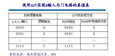查找表(Look-Up-Table)简称为LUT,LUT本质上就是一个RAM。目前FPGA中多使用4输入的LUT,所以每一个LUT可以看成一个有4位地址线的RAM。当用户通过原理图或HDL语言描述了一个逻辑电路以后,PLD/FPGA开发软件会自动计算逻辑电路的所有可能结果,并把真值表(即结果)事先写入RAM,这样,每输入一个信号进行逻辑运算就等于输入一个地址进行查表,找出地址对应的内容,然后输出即可。