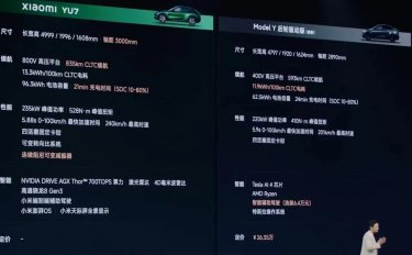 早在小米SU7的发布会,雷军就表示小米汽车会把特斯拉和保时捷当作最主要的竞争对手,在介绍小米YU7的过程中,雷军还是把特斯拉Model Y以及其他豪华品牌车型拉出来进行多次对比。