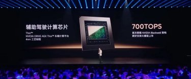 车机系统采用第三代骁龙8移动平台,辅助驾驶计算芯片采用NVIDIA DRIVE AGX Thor车载计算平台,最高算力达到700TOPS,而且还是全系标配。