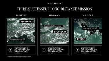 2022 年的时候,奔驰狠狠地秀了一把肌肉:一辆 VISION EQXX 能效概念车实现了 1 次充电行驶超过 1200 公里,它最初设立的目标是续航达到 1000 公里(1 度电跑 10 公里),最终在德国斯图加特到北安普敦郡银石赛道上,跑出了 1 度电跑接近 12.1 公里的能效成绩,即用 100 度电跑出了 1207 公里的续航成绩。去年它又创造了百公里能耗仅 7.4 度电的新纪录。
