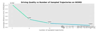 可以看见在wod数据集上还是轨迹越多越好,但边际效益递减,即增加候选轨迹数量的优势在某个点之后会减弱。