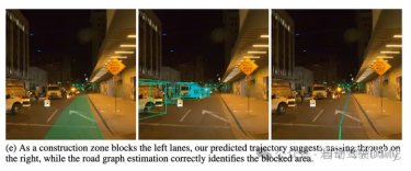 道路表示为左变道,但是左侧有施工牌,这个planning就考虑这些复杂信息,直接沿着当前车道开