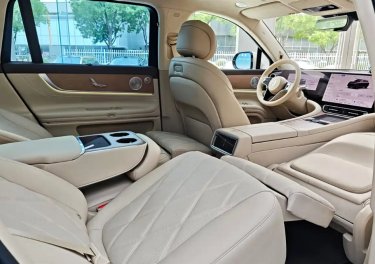智能座舱展调研显示,问界M9拥有3110mm的超长轴距。其六座版三排腿部空间达950mm,远超传统SUV 780mm的平均水平,并且二排提供了1.2米的超宽通道,方便第三排乘客进出。