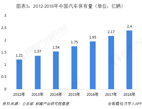 近年来,随着我国经济的稳步发展,居民收入和消费水平的不断提高,对汽车的需求量整体扩大,我国汽车产销量整体提升,全国汽车保有量稳步提高。根据公安部数据显示,2012-2018年,我国汽车保有量逐年增长,年复合增长率超过12%。2018年底,全国汽车保有量达到2.4亿辆,比2017年增加2285万辆,增长10.51%。从车辆类型看,小型载客汽车保有量达到2.01亿辆,首次突破2亿辆,比2017年底增加2085万辆,增长11.56%,是汽车保有量增长的主要组成部分。