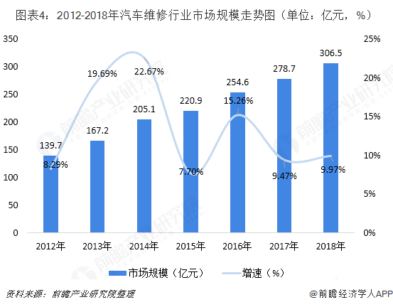 2007年以来,中国汽车工业化进程进一步加速,中国汽车保有量增长速度较为迅猛,致使全国汽车检测站检测汽车量不断攀升。2018年,中国汽车保有量达2.4亿辆,以汽车保有量的20%的检测量作为计算依据,粗略估算,目前中国汽车检测市场规模近4800万辆次。2018年我国汽车检测市场规模约为306.5亿元,2012-2018年复合增长率达到13.99%。。
