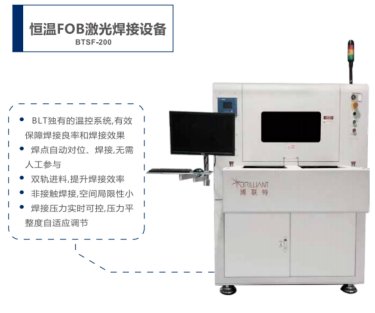 FOB激光焊是利用恒温激光对柔性电路板(FPC)和刚性电路板(PCB)进行焊接的一种新型的加工工艺,利用激光的非接触加工和局部加工优势,有效保障了焊接的稳定性,可作为微电子表面组装连接技术领域的新兴制造工艺和重要组成部分。