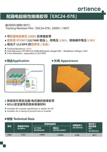 展品性能特点:CTI2000V/超薄100um单面胶膜/耐高温180℃,该产品可替代高压器件中的爬电山,爬电槽爬电山爬电槽(实现电气间隙=爬电距离),可以缩短X和Y方向爬电距离。